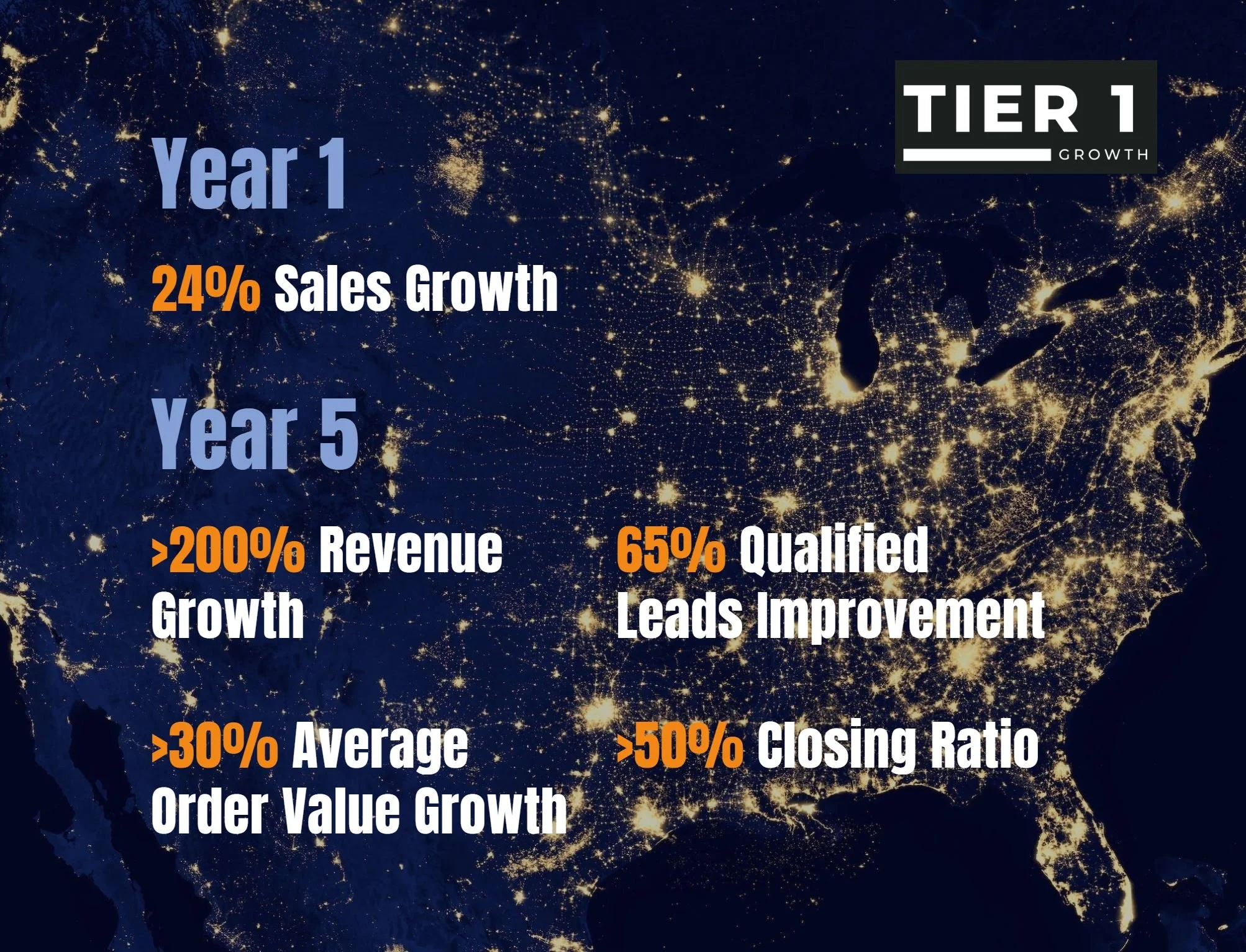With Tier One Growth, the manufacturing company saw a 24% jump in sales within the first year. Within five years, revenue tripled (3X growth in 5 years).